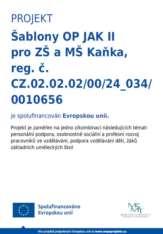 Projekt zaměřený na inovativní vzdělávání dětí a žáků ZŠ a MŠ Kaňka je spolufinancován Evropskou unií.