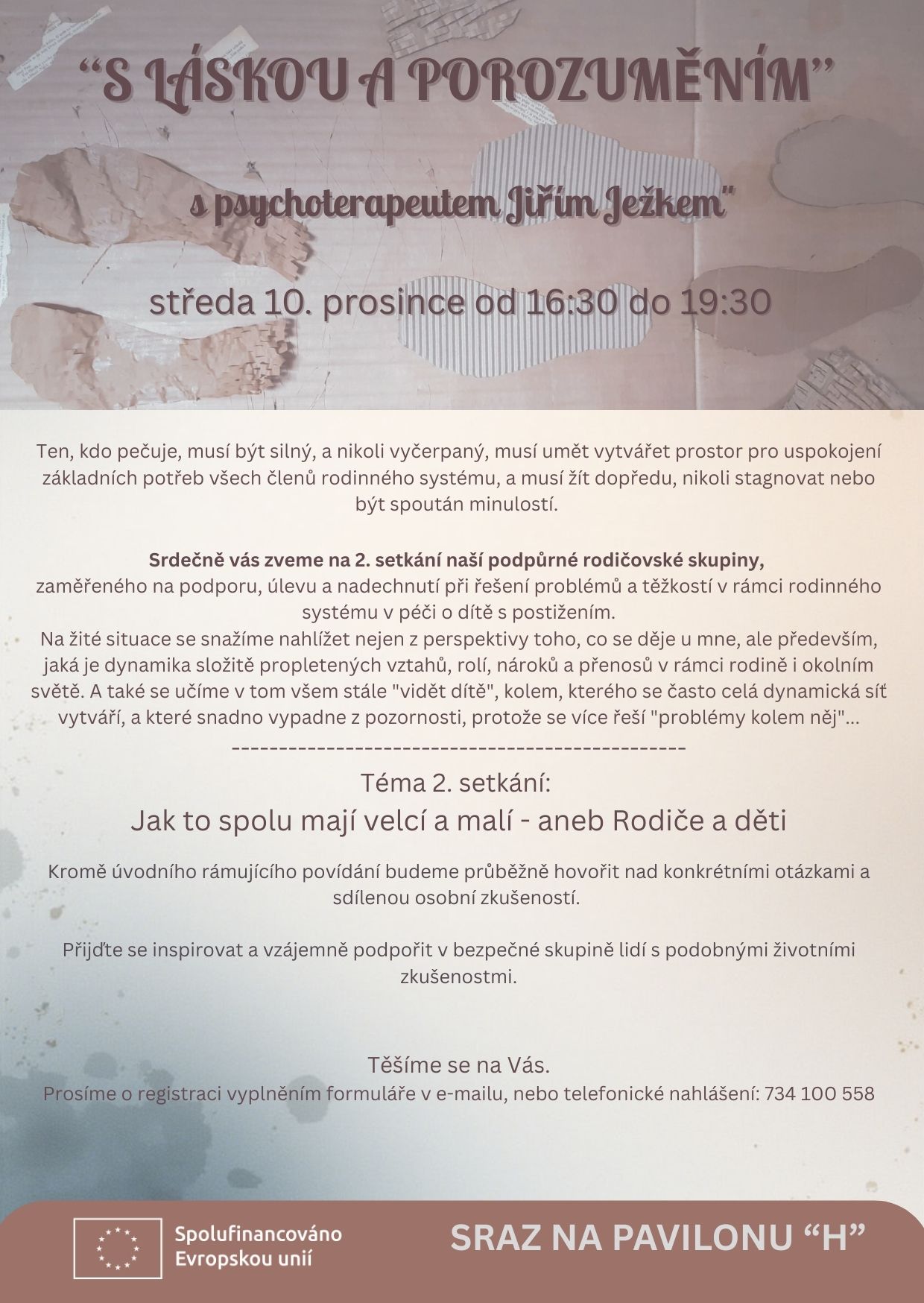 V lednu proběhne již třetí setkání rodičovské skupiny s psychoterapeutm MUDr. Jiřím Ježkem. Jsou otevřena rodičům a pečovatelům našich klientů, kteří si první dvě setkání velmi pochvalovali. Proto jsme vypsali další termíny a v aktivitě budeme pokračovat i v roce 2026.